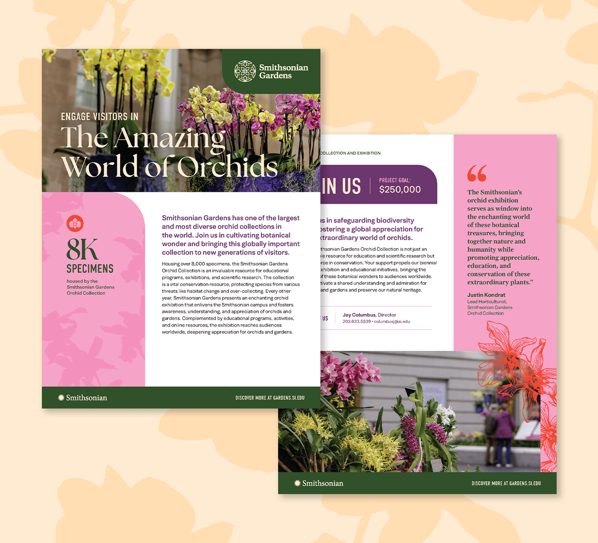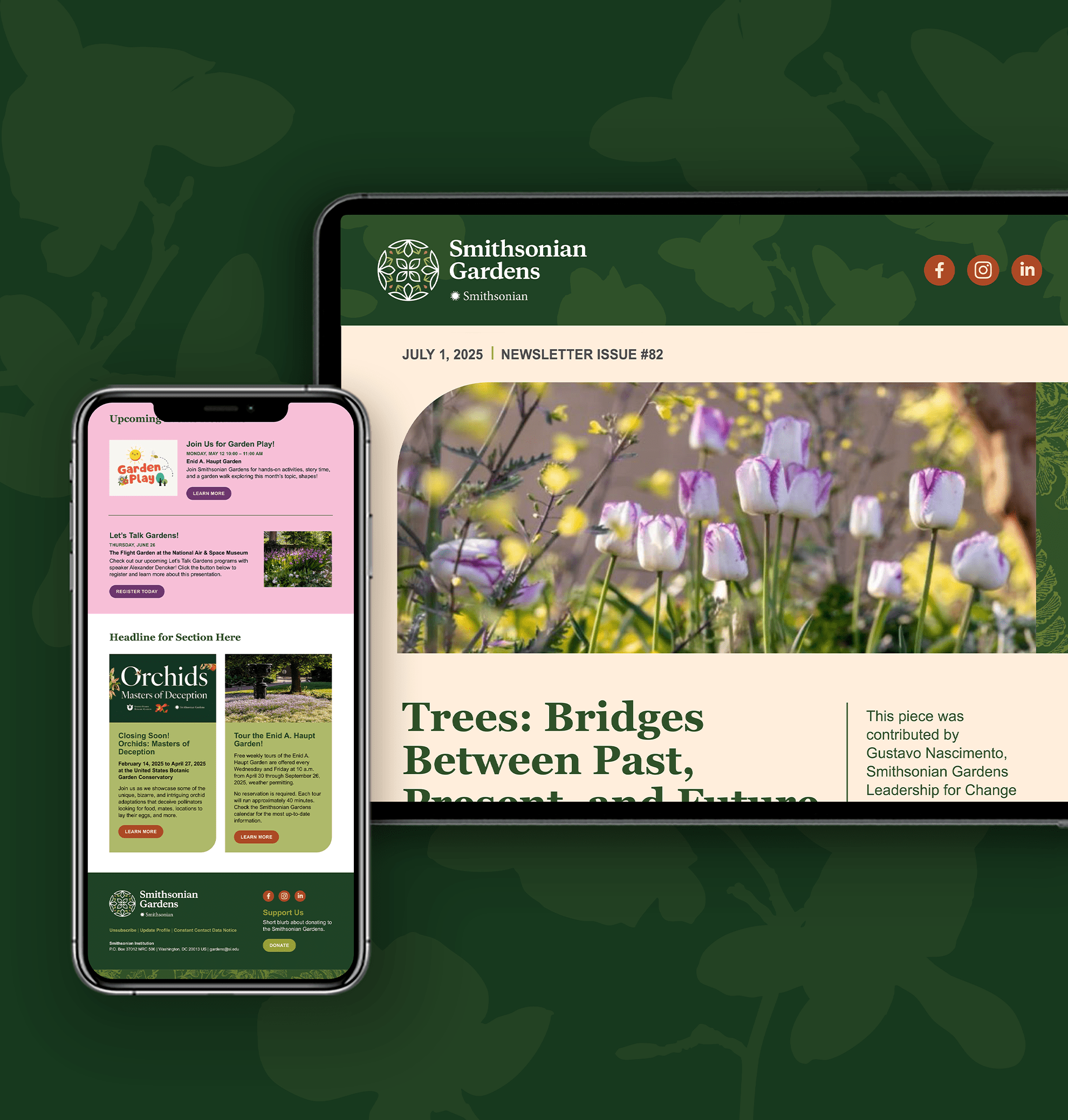 Smithsonian Gardens—one of the Smithsonian Institution’s 21 museums—is one of the most visited public gardens in the world. Its 15 sites across Washington, DC, tell unique stories that extend the museum experience beyond the Institution’s traditional walls. Eighty2degrees was tasked with strategically building a new brand identity and messaging that reflects Smithsonian Gardens’ mission, vision, and stature: a living museum that engages, informs, and inspires audiences while providing places of beauty and respite for tens of millions of visitors every year.