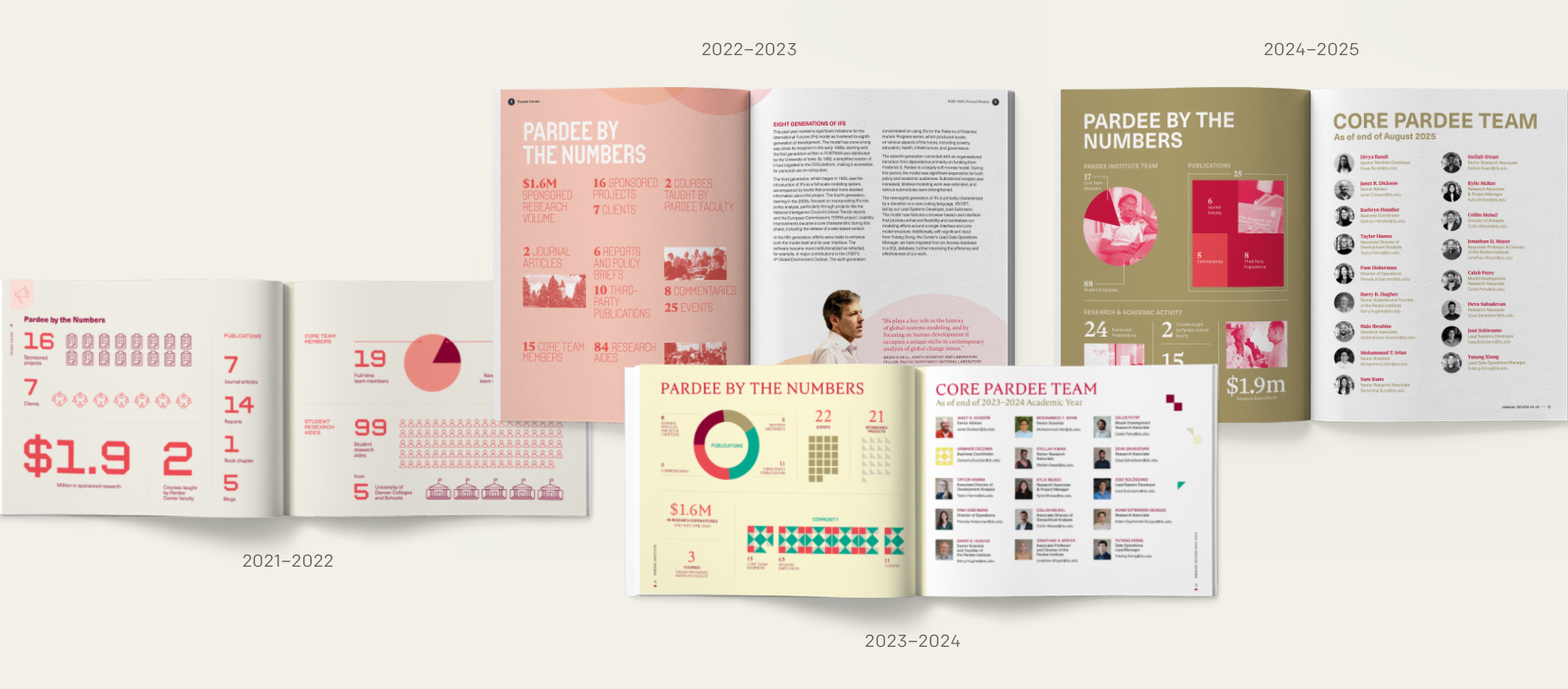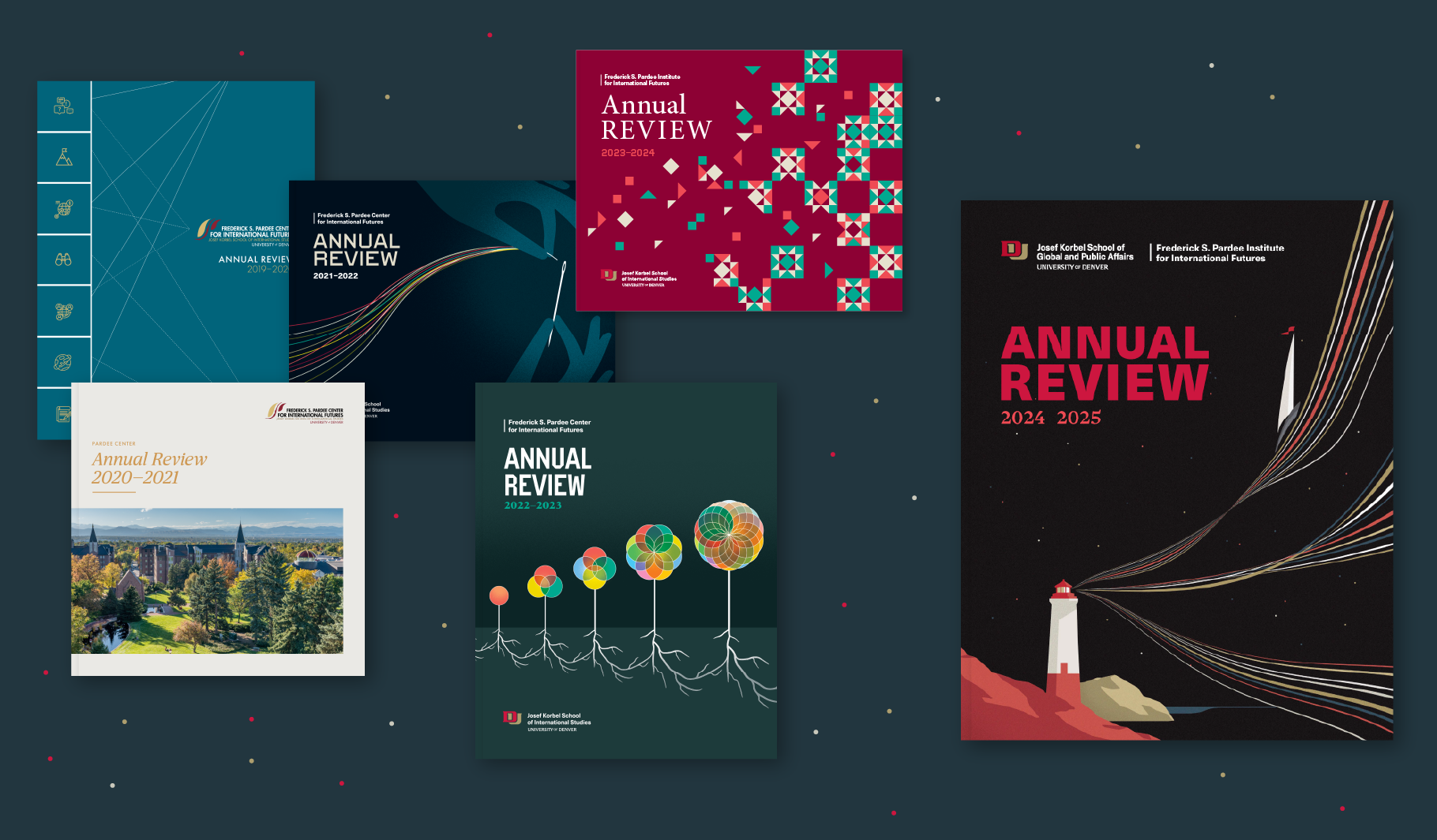 Eighty2degrees was asked to design the University of Denver’s Josef Korbel School of International Studies Frederick S. Pardee Institute for International Futures annual review for the sixth year. Reflecting on an extremely difficult year globally, the report showcases the Pardee Institute's research projects on the interaction of human, social, and physical systems to improve sustainable human development.