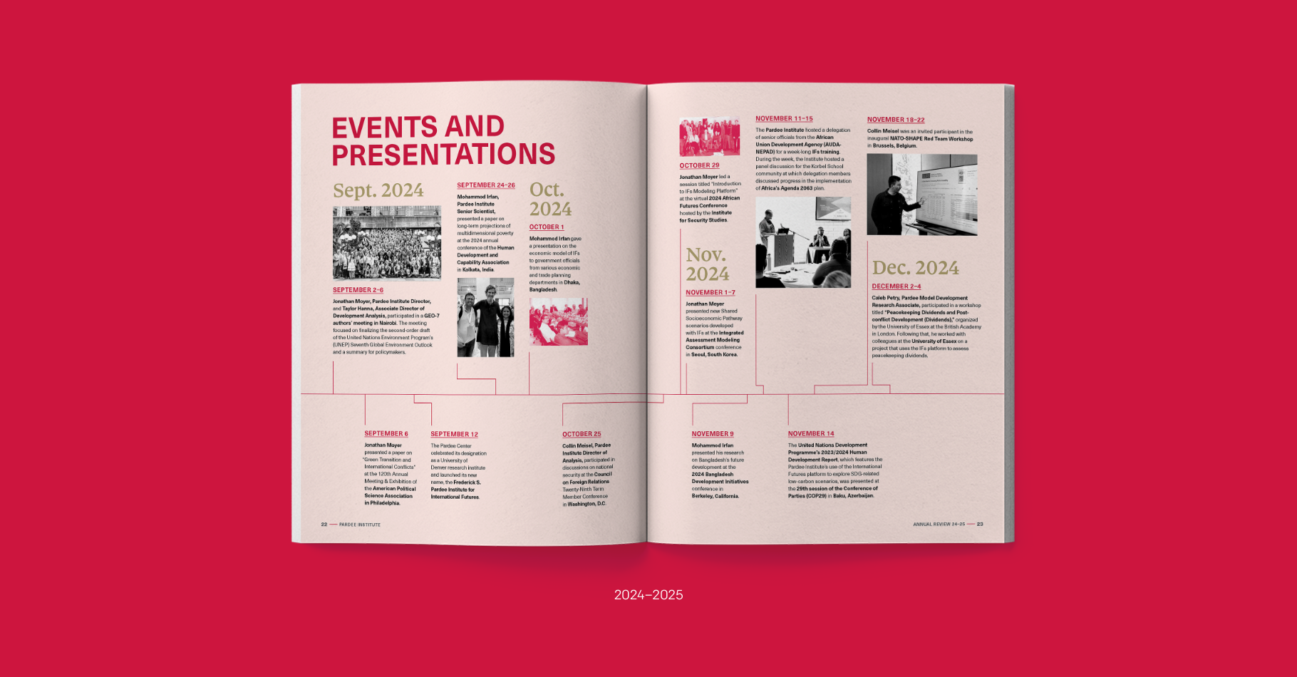 Eighty2degrees was asked to design the University of Denver’s Josef Korbel School of International Studies Frederick S. Pardee Institute for International Futures annual review for the sixth year. Reflecting on an extremely difficult year globally, the report showcases the Pardee Institute's research projects on the interaction of human, social, and physical systems to improve sustainable human development.