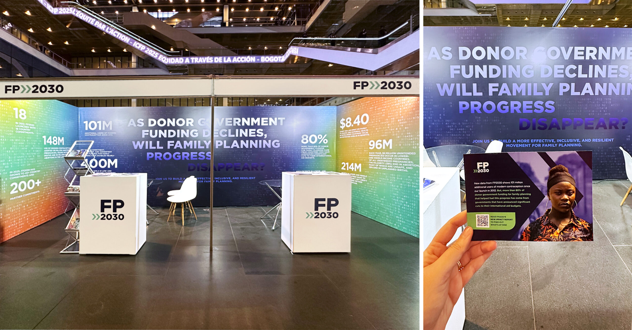 The goal of the booth was to highlight FP2030's recent achievements and the Sustainable Development Goals FP2030 focuses on around the globe. It also would introduce conference participants to FP2030's partnership commitments—public financial, policy, or programmatic pledges to advance rights-based family planning.
